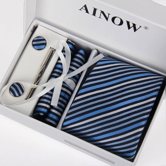 New Men's Gift Box Tie Fashion Business Striped Necktie Square Scarf Combination Set Gift Box Gift