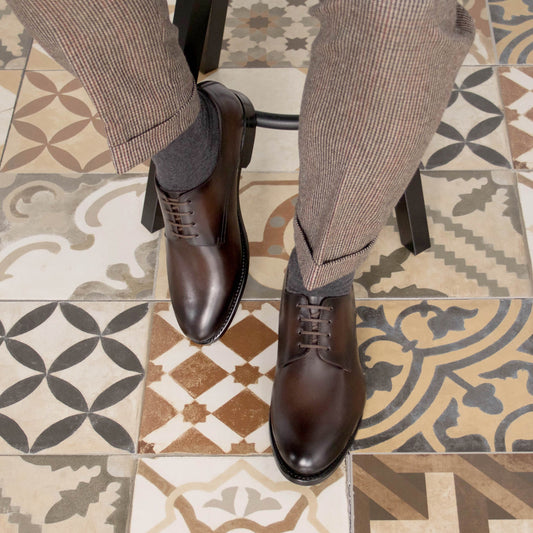 A bit more casual than the oxford, the derby features an open lacing system, with the quarters sewn on top of the vamp. The derby is a classic style that never goes out of style. The derby is perfect for any casual look and can also be dressed up with a suit and tie.