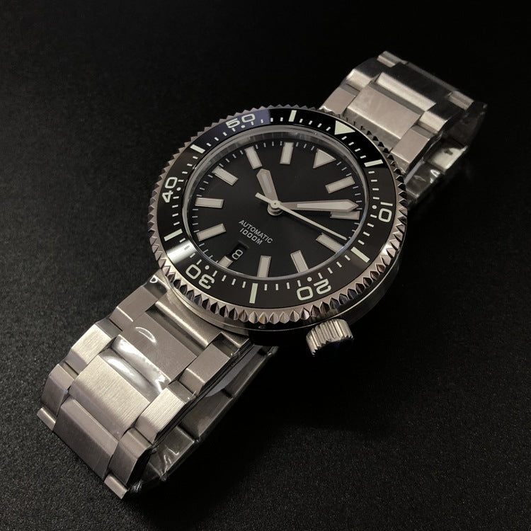 A style: 316L stainless steel three-bead strap without LOGO, blue & green luminous