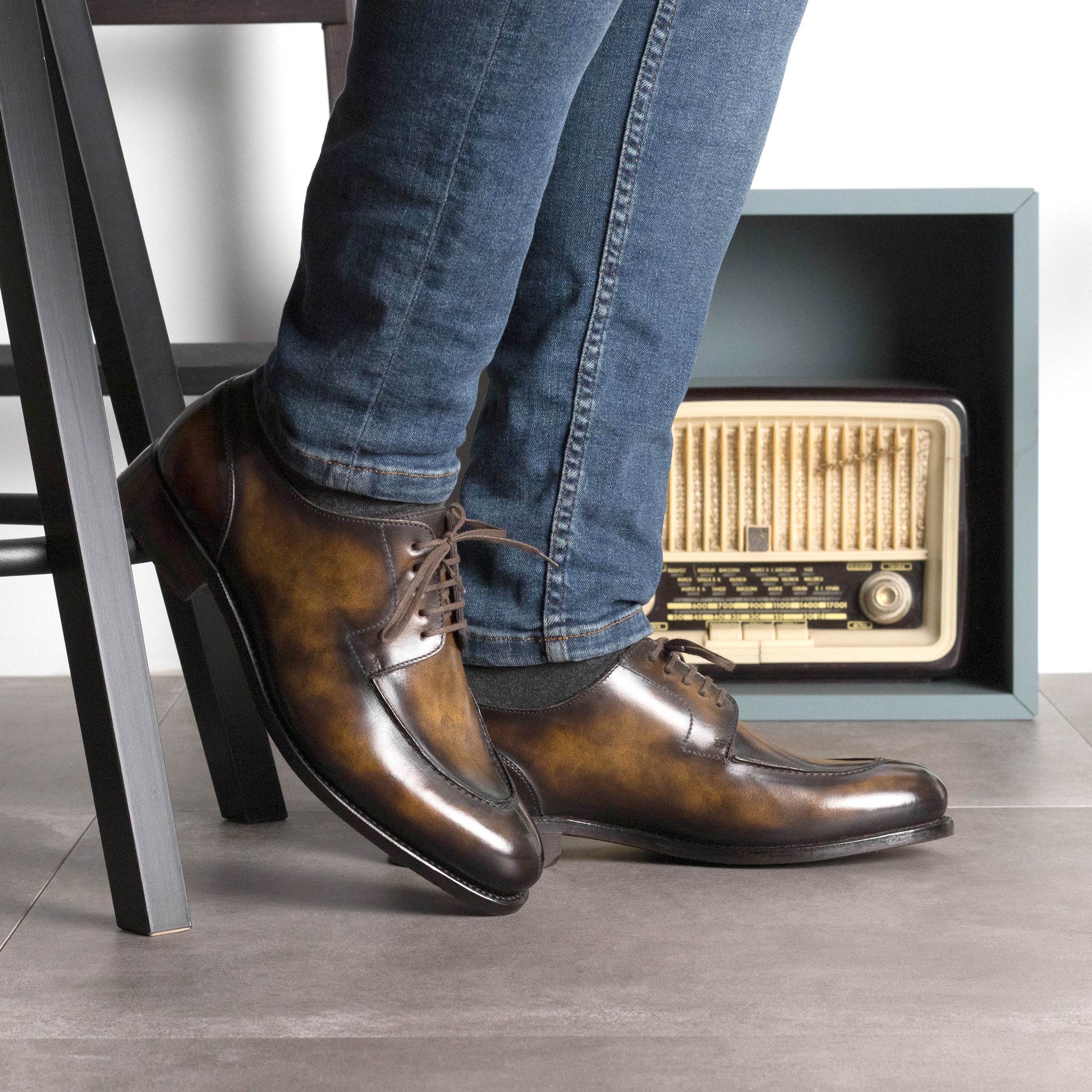 Materials:Â Tobacco patina Sole:Â Brown Goodyear Welt mixed leather rubber sole Last:Â Zurigo - Rounded toe for traditional English Look