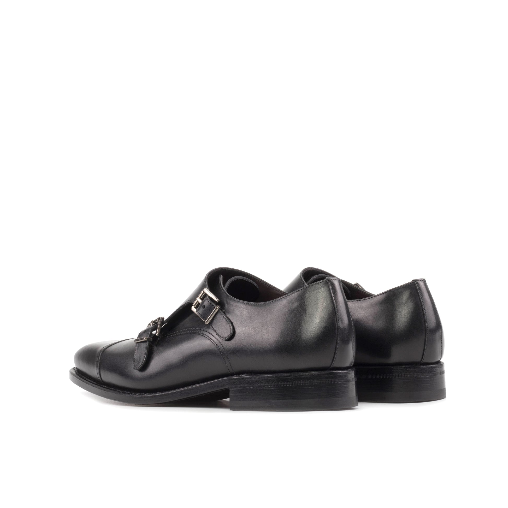 Materials: Black box calf Sole: Brown Goodyear Welt leather sole Last: Savile - Sleek looking aesthetic with slight chisel toe Featuring two straps coming across the upper, the double monk is the hottest shoe in men’s fashion right now. This shoe is perfect for anyone looking for a modern twist on a classic, elegant style.