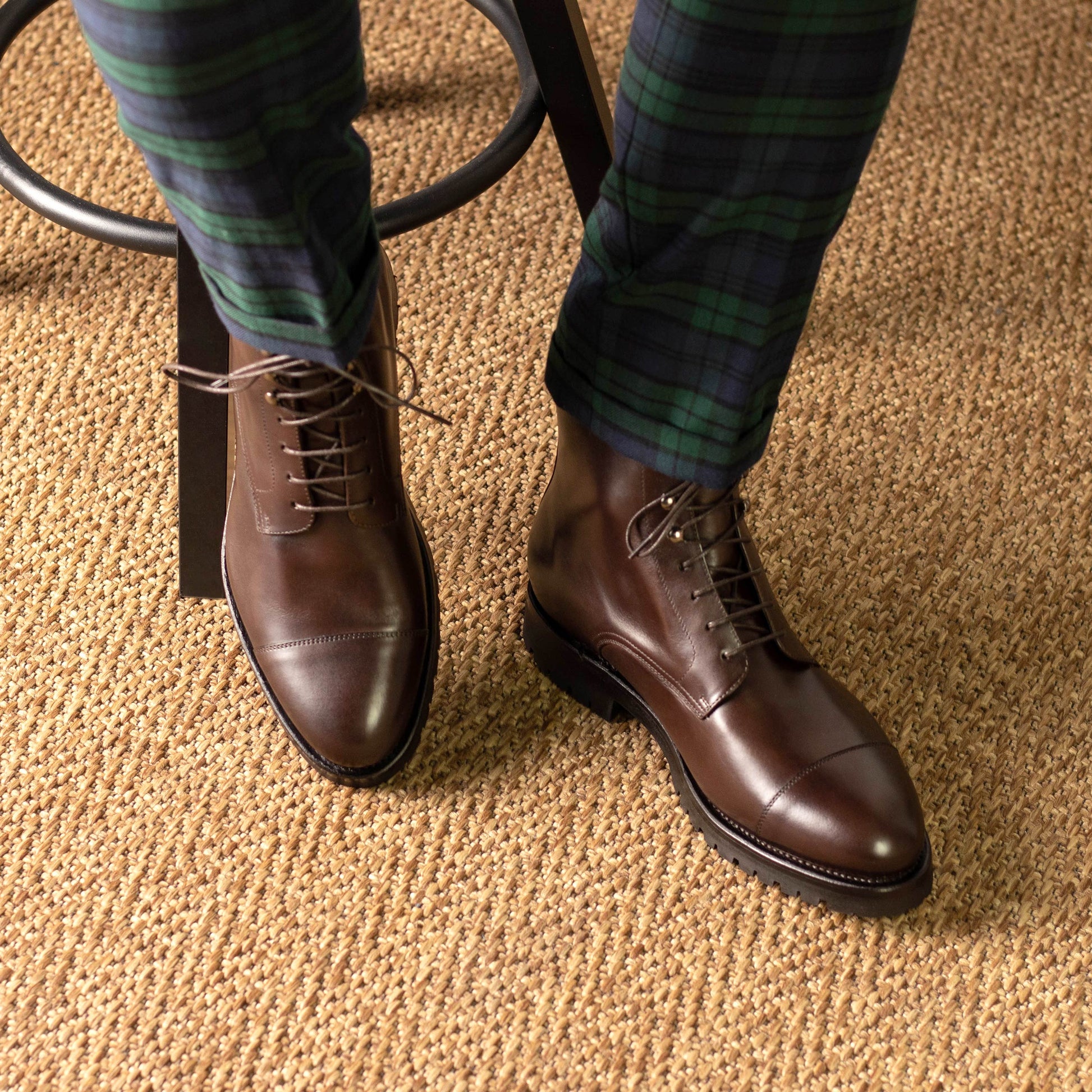 Materials:Â Dark brown box calfSole:Â Black commando rubber soleLast:Â Zurigo - Rounded toe for traditional English Look