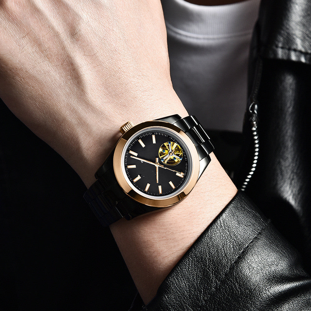 Men's Stainless Steel Waterproof Fashionable Tourbillon Mechanical Watch