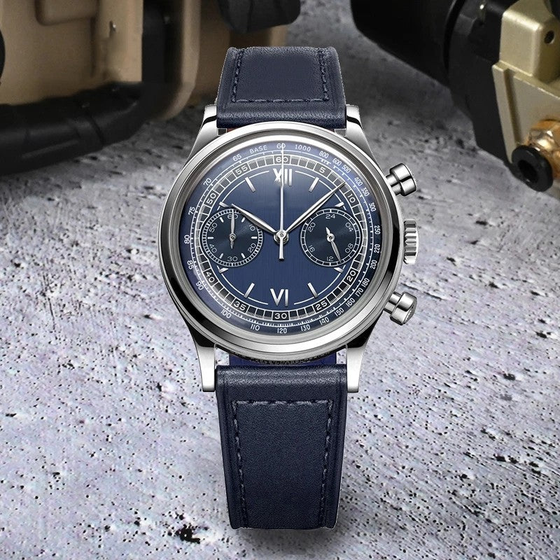 Retro Men's Multifunctional Genuine Leather Quartz Watch