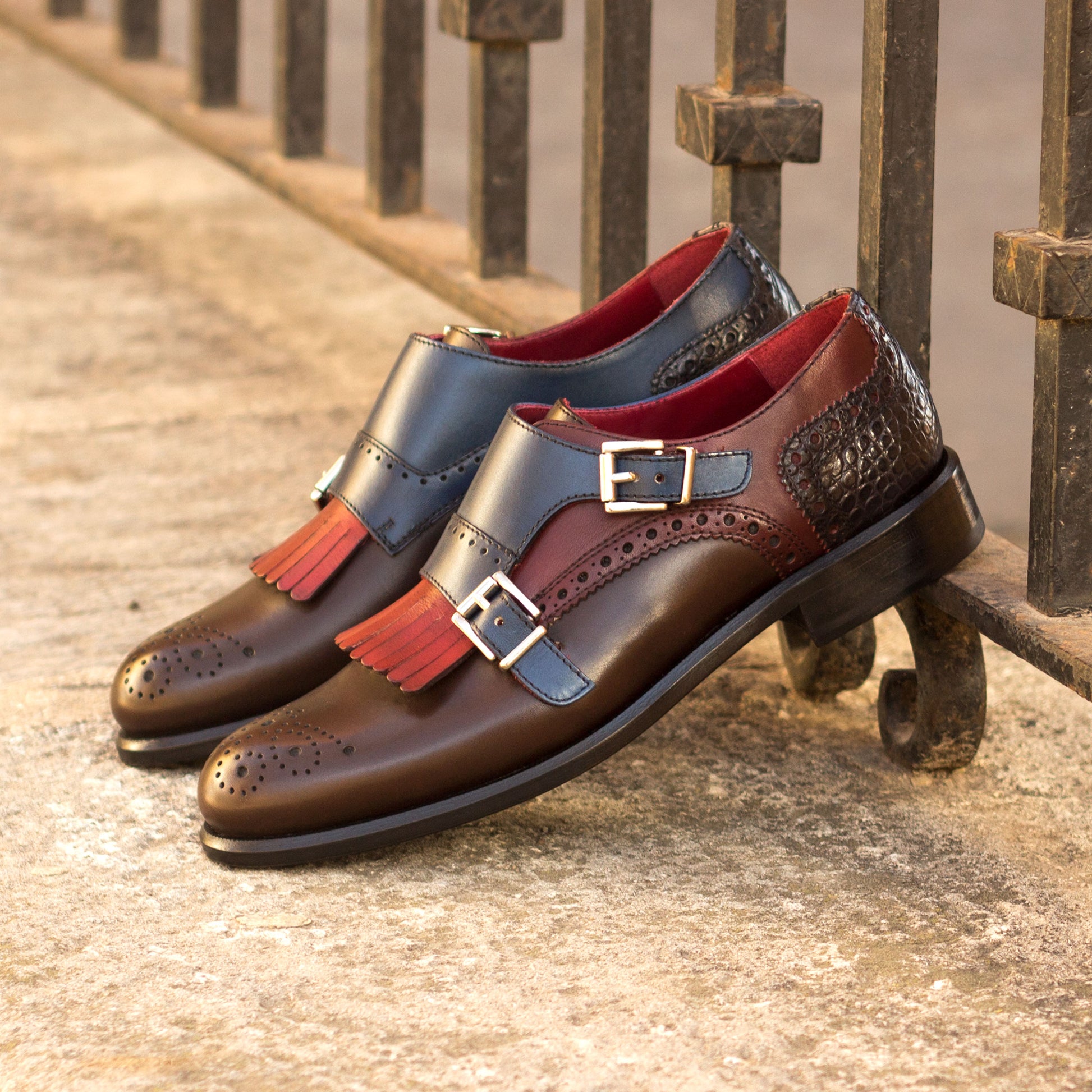 Step away from the norm with this stylish and contemporary hybrid of a brogue and kiltie monk. It combines a trio of classic dress accents: monk straps, brogue details and fringes on the upper.